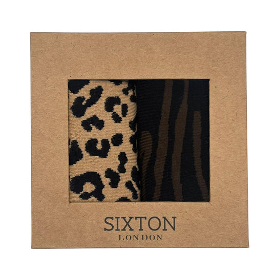 Duo de boîtes de chaussettes Léopard Sable & Savannah marron