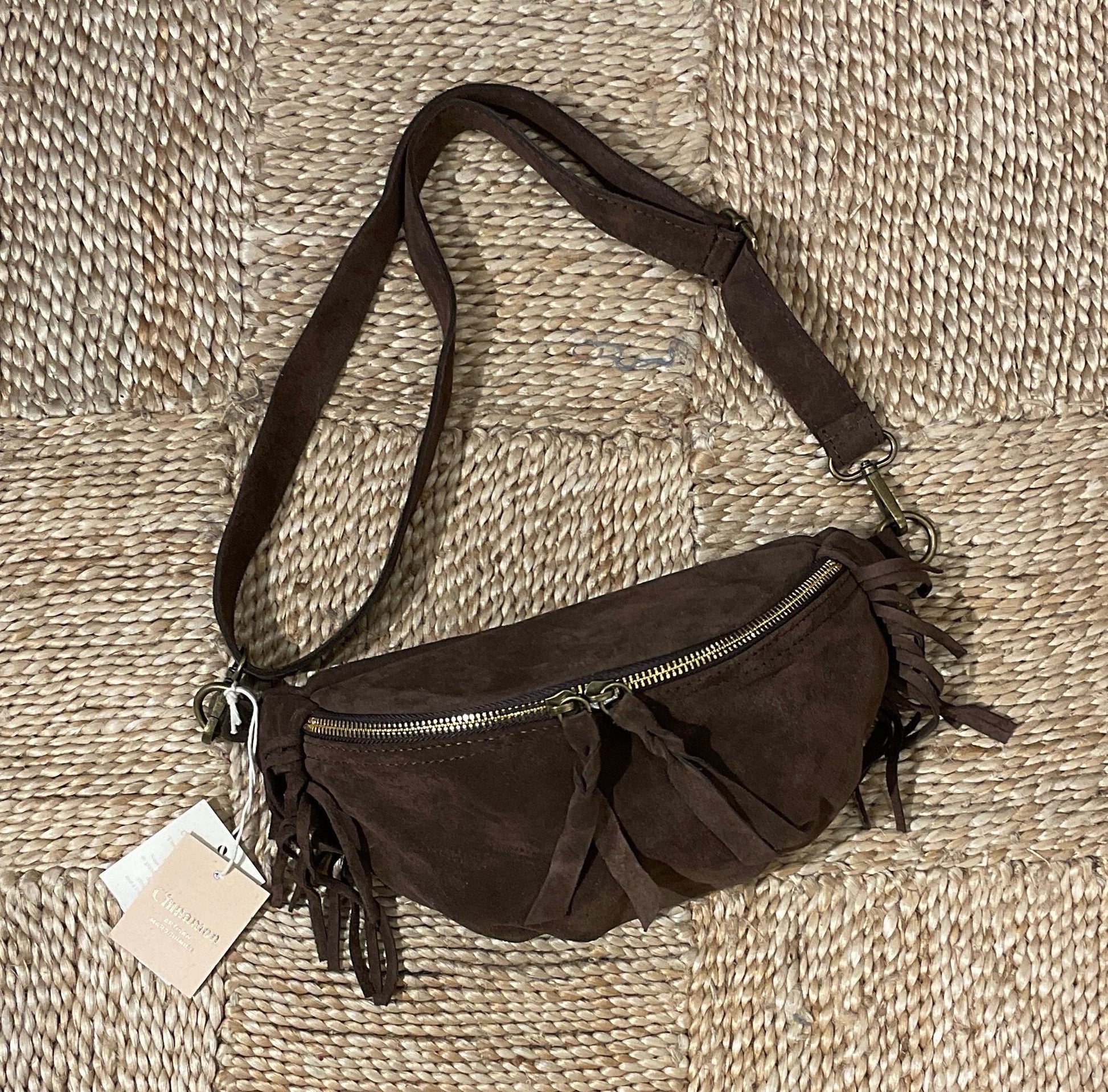 SAC BANANE CUIR FRANGES - CHOCO